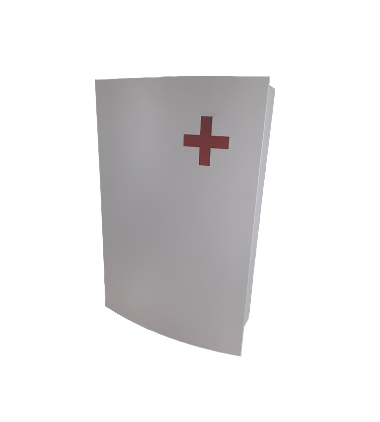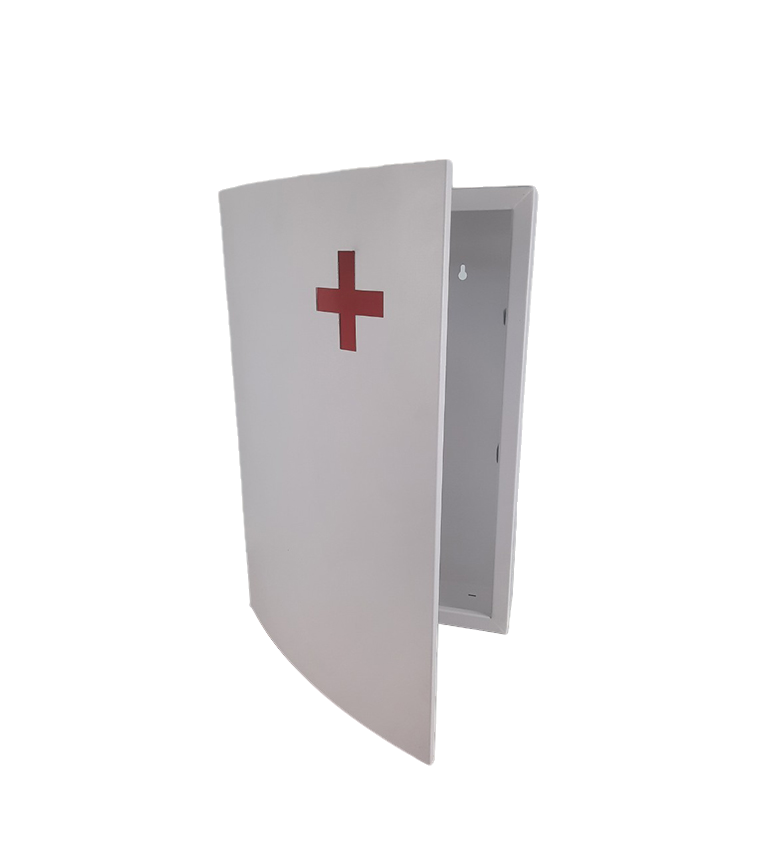 วัสดุ : ฝาหน้า/ฝาบนเป็นอลูมิเนียมพ่นสีเพาเดอร์โค้ด : บอดี้เป็นเหล็ก EG พ่นสีเพาเดอร์โค้ด : สำหรับใส่ยาเวชภัณฑ์